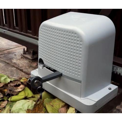 - Ручная разблокировка через рычаг на корпусе — ворота можно открыть вручную при отключении электроэнергии без инструментов.